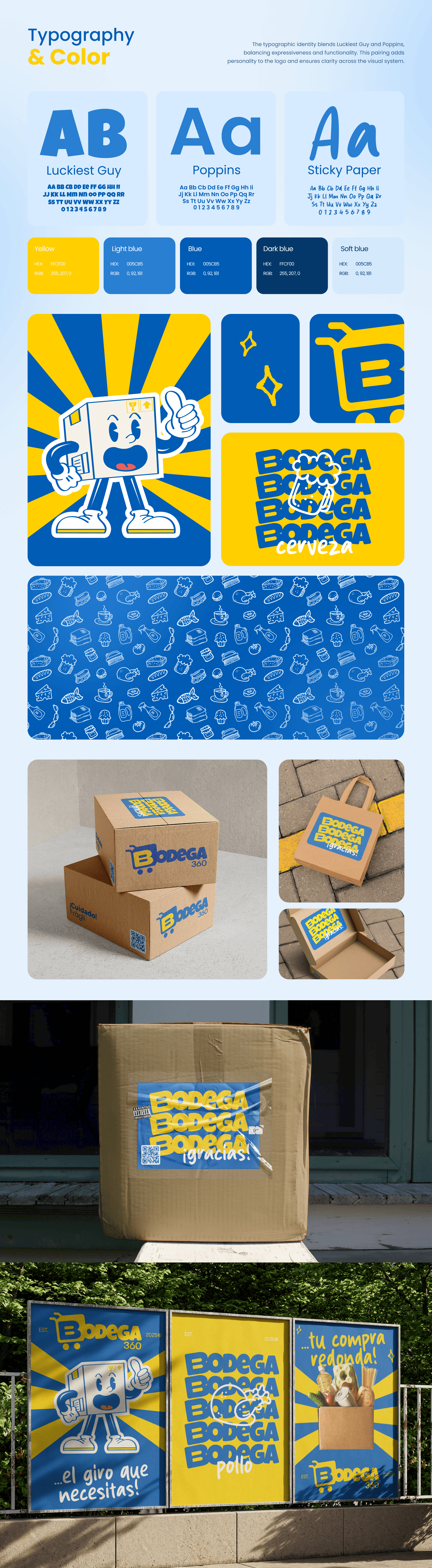 The visual system combines bold typography, a friendly color palette, and custom assets to enhance recognition and usability. Elements like packaging and iconography reinforce a cohesive, approachable brand experience.