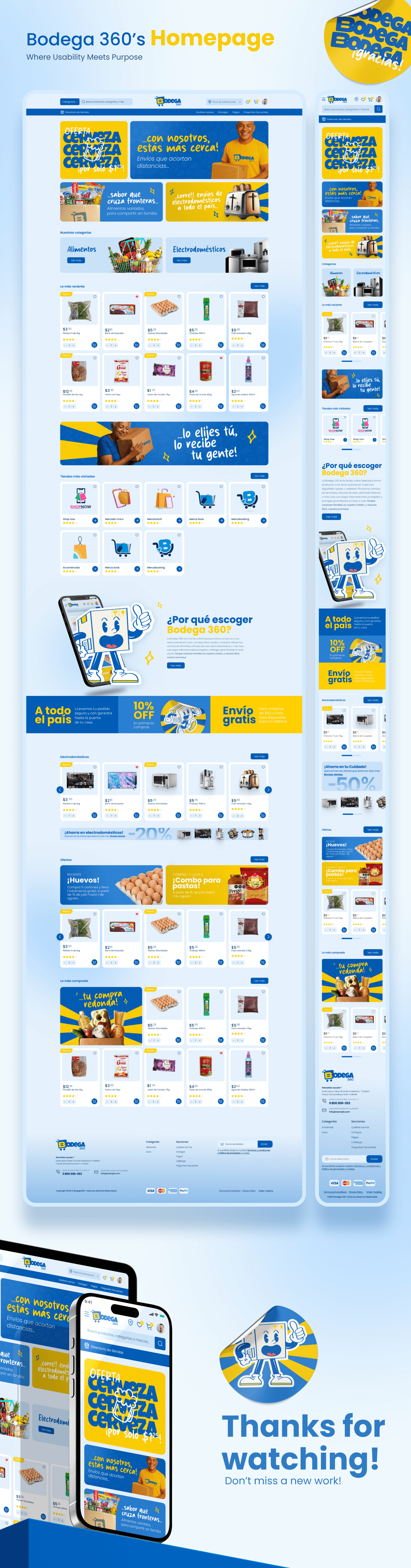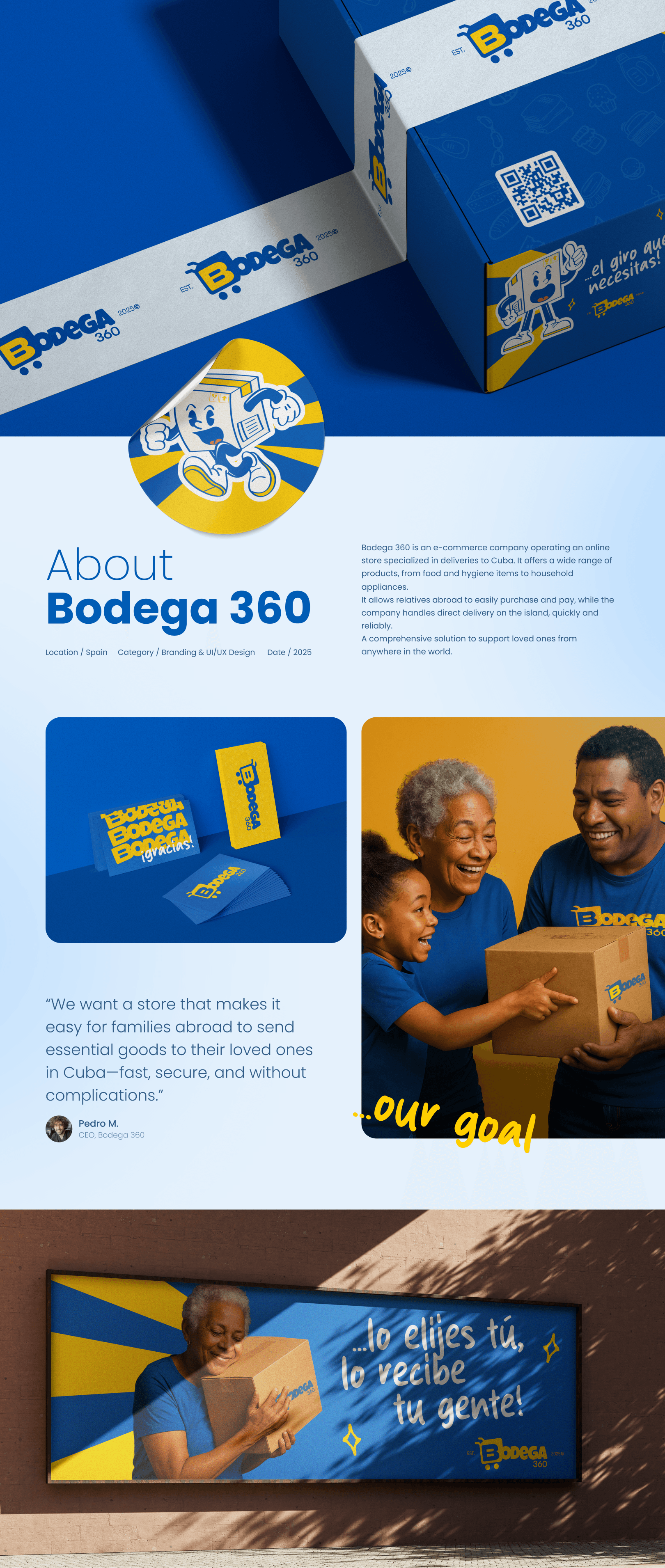 Bodega 360 is an online store for sending essential goods to Cuba. The design aimed to simplify the experience and build trust between families abroad and their loved ones.